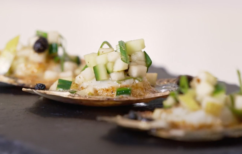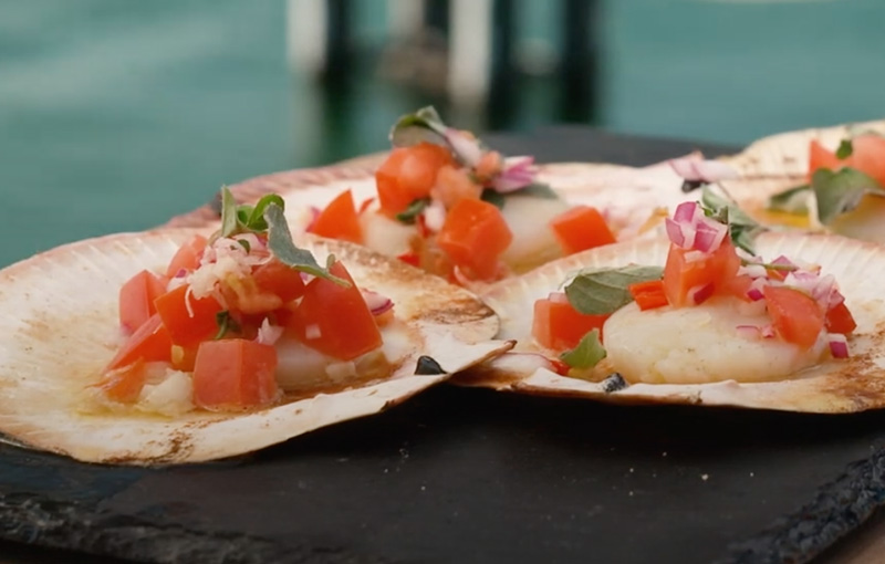 MISO SCALLOPS WITH BLACK BEAN SALSA